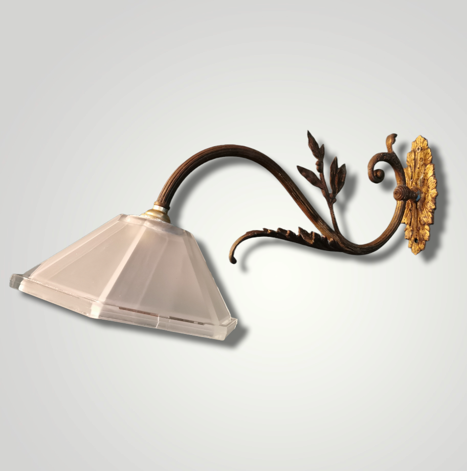 Pair of Antique French Art Deco Gilt Wall Lights with Frosted Glass Shades c.1930